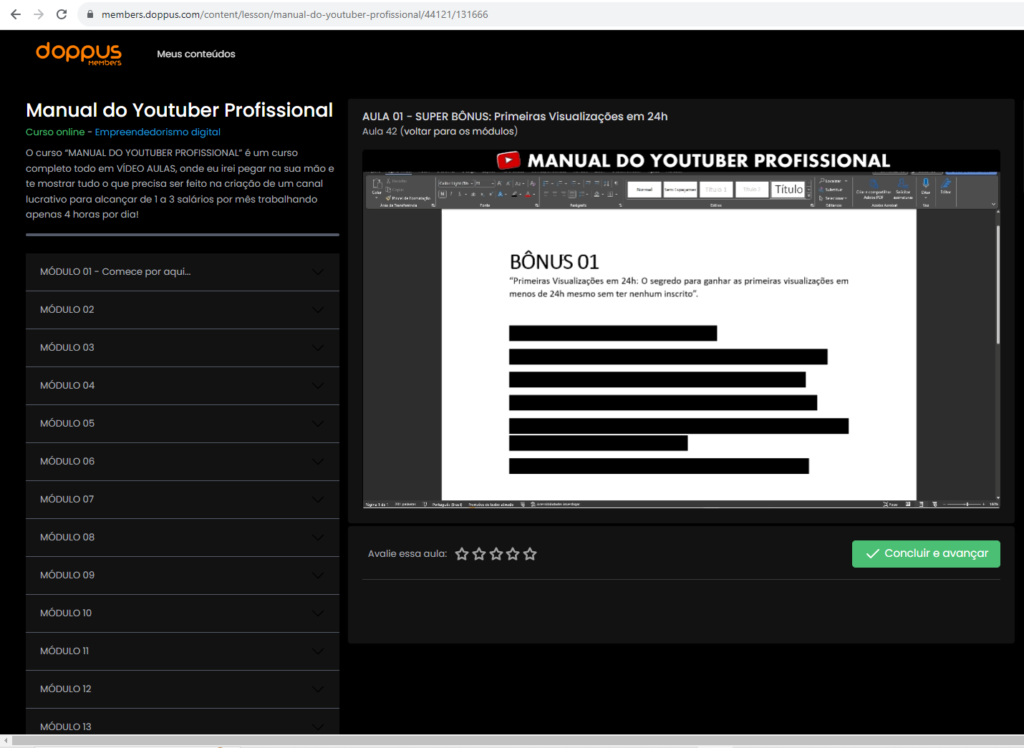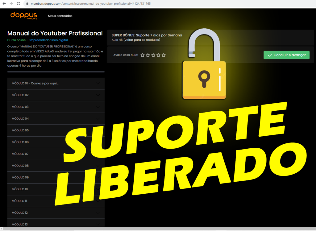 O produto está em uma Área de Membros Premium para você ter uma experiência melhor com o produto.