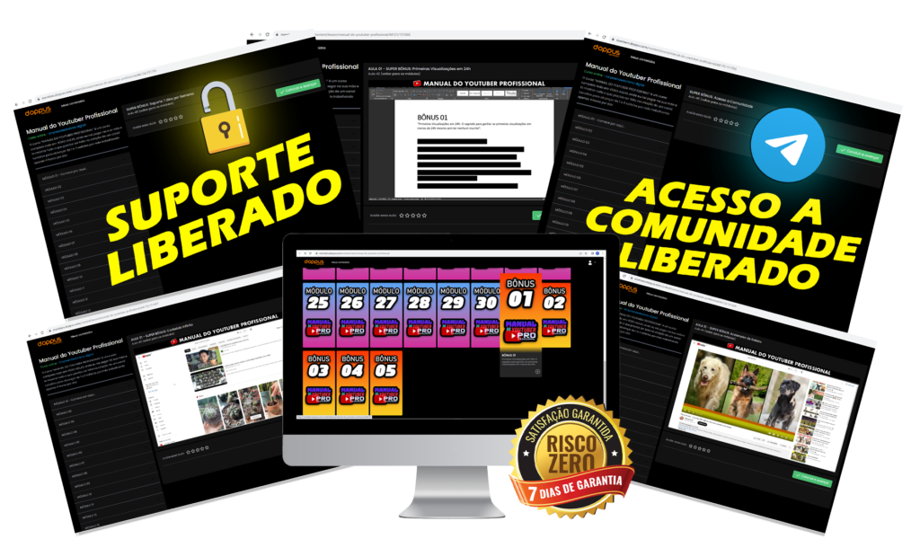 Você terá acesso IMEDIATO a 5 SUPER BÔNUS que vão te ajudar a ACELERAR SEUS RESULTADOS no Youtube, vão te ajudar a MONETIZAR MAIS RÁPIDO e ECONOMIZAR MUITO MAIS TEMPO na criação dos seus vídeos…